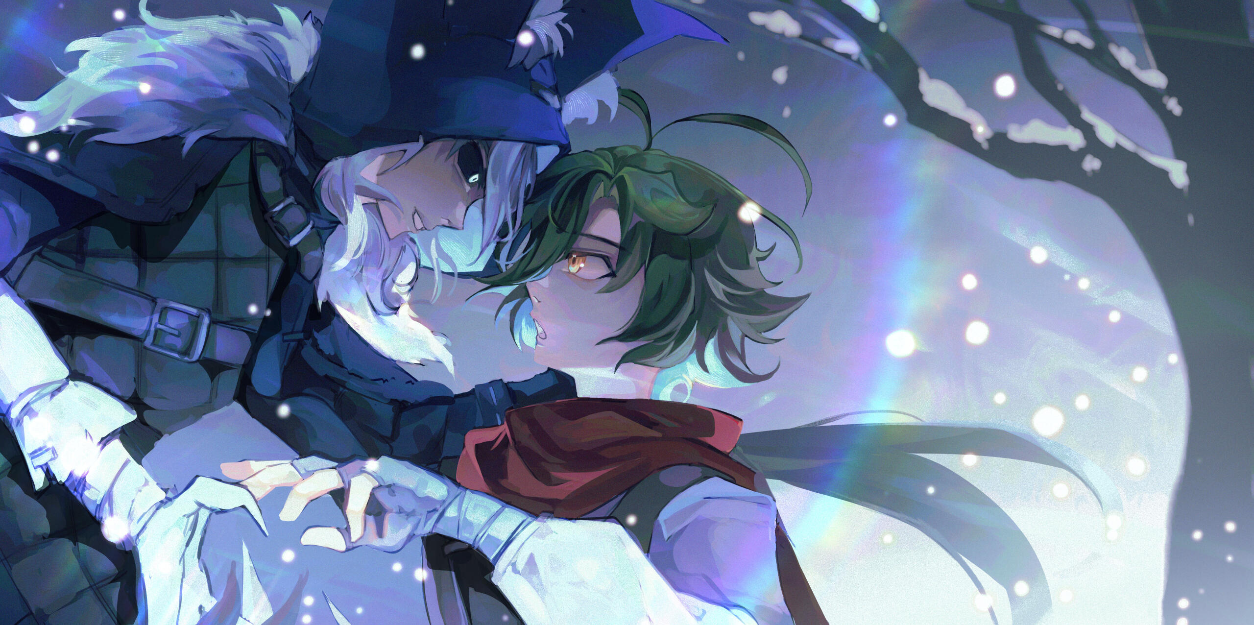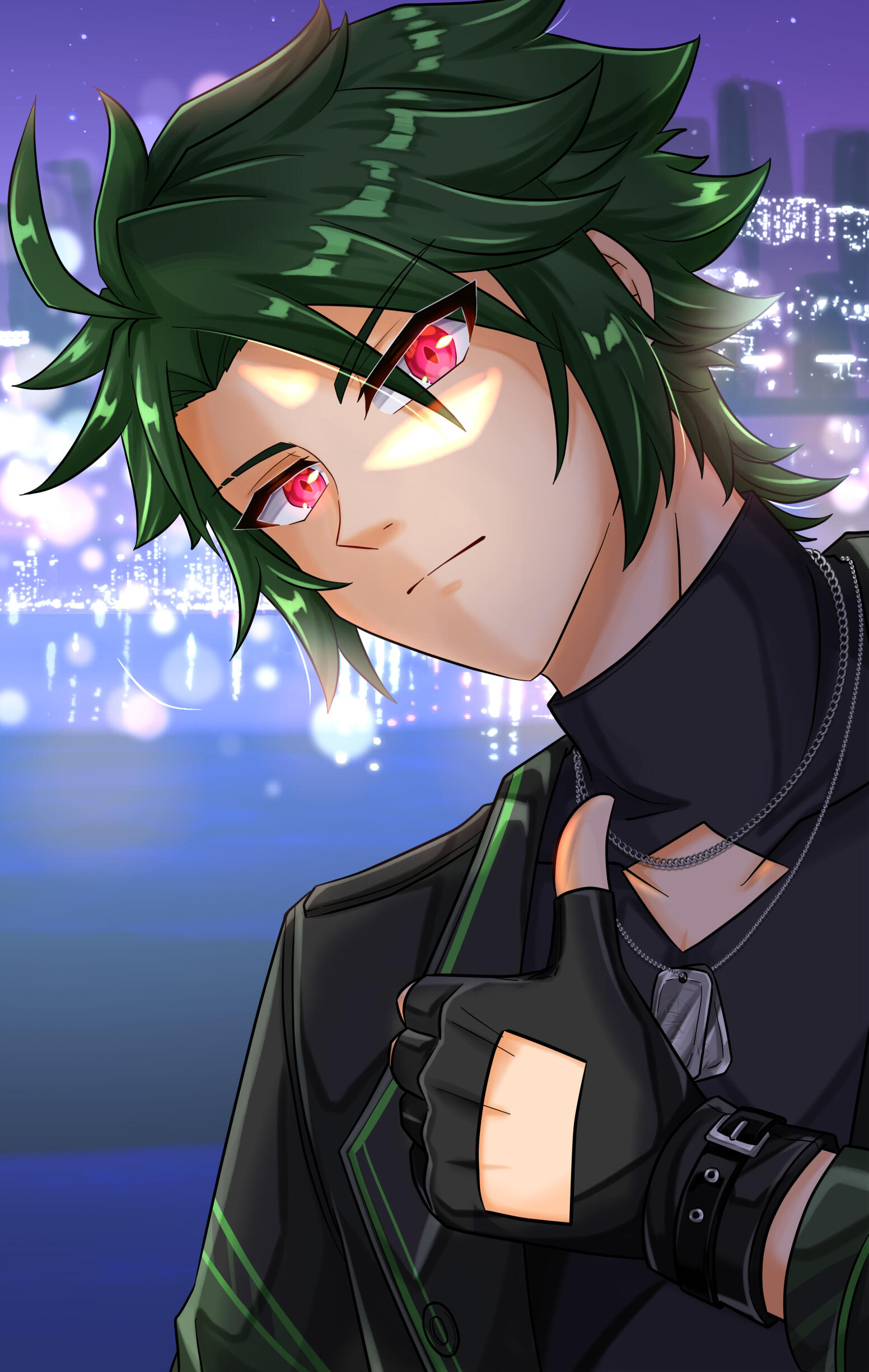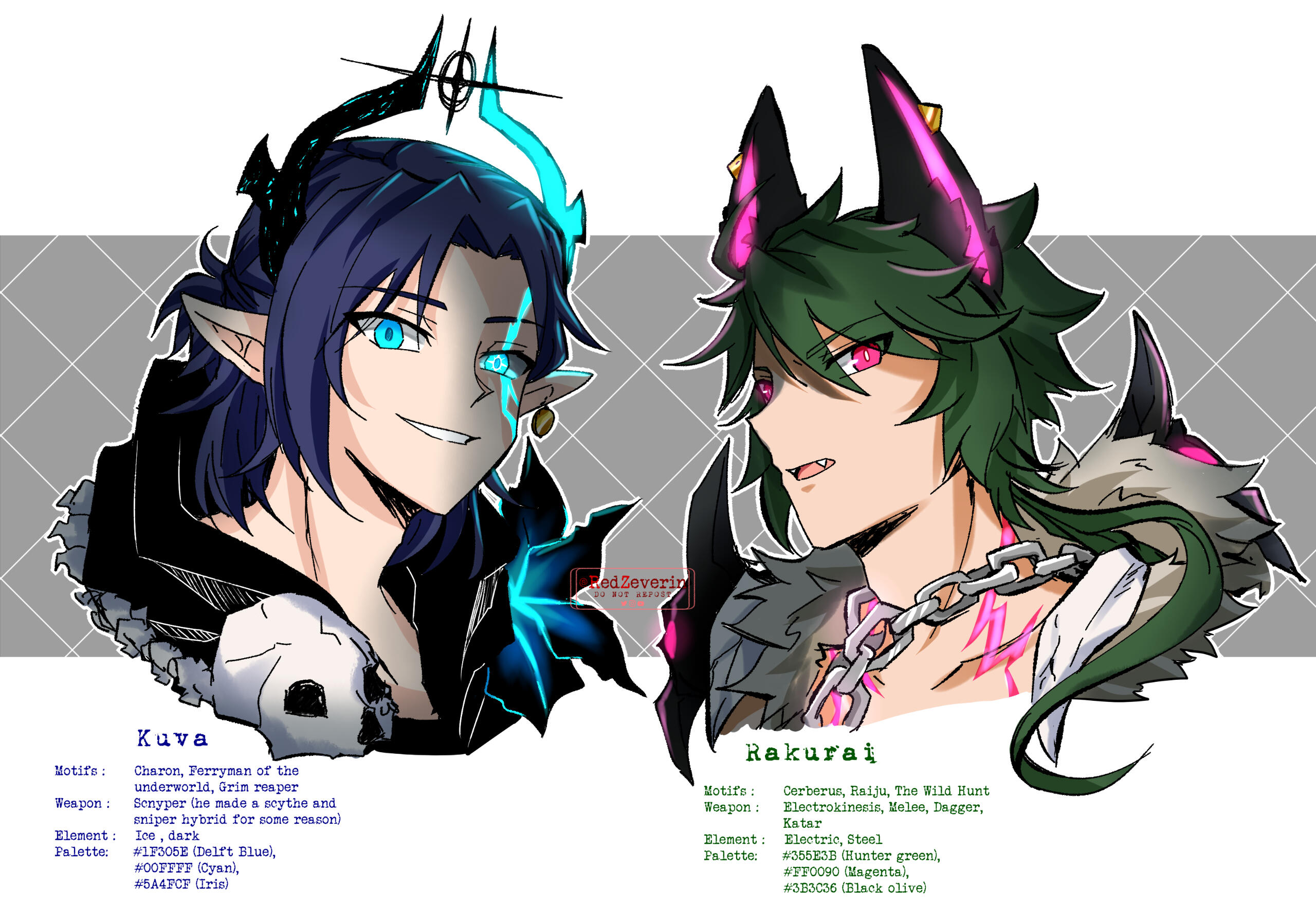 Brash and aggressive with mouth of a sailor. Impulsive, but wth sharp intuition to follow up on his moves. Dislikes a chaotic environment, so if nobody is leading, he takes charge to keep everything and everyone in order. In combat, he is as silent and as fast as his blades. He deals with problems and enemies with lethal efficiency.Now in his peaceful life, Rakurai's explosive temper has mellowed down. He doesn't yell as much but still ends up cursing. His usually glaring expression only hides the fact that he is a curious and healing soul. He is also very much new to affection and struggles to accept and express it.Unfotunately, the ashes of war is still lingering in the corners of his eyes, leaving him with aversion to sudden noise and touches. His senses are still subconsciously high. Only when he is around his loved ones does he let his guard down, and enjoy the moment as it is.